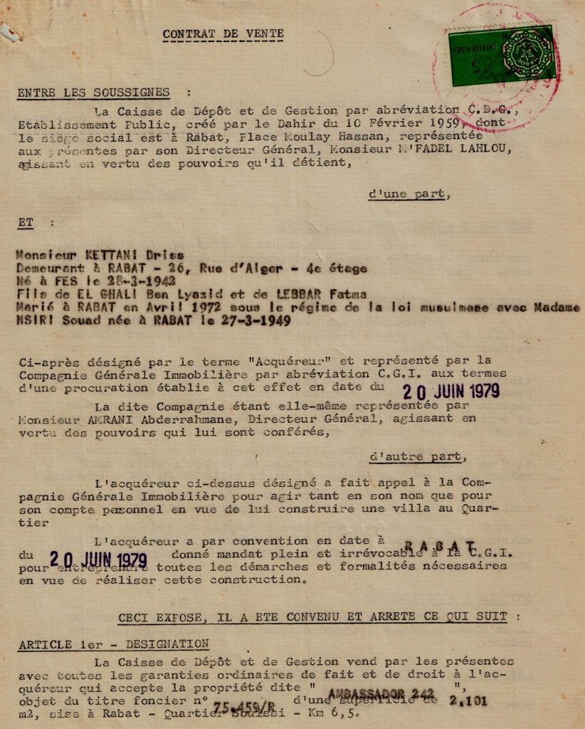 Protégé : عقد اقتناء فيلا السفراء، 1979 Lire la suite »